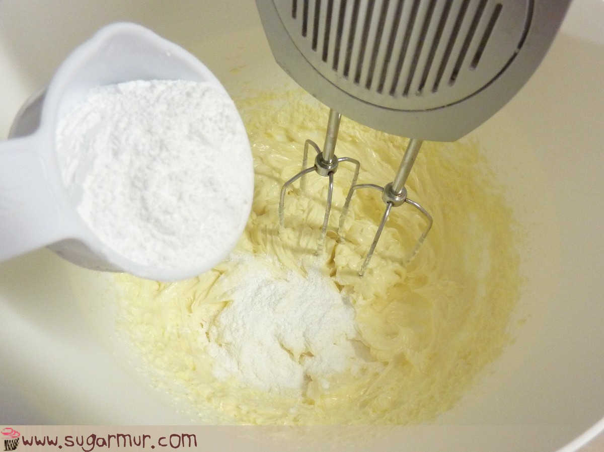 Cuando lo tengamos listo iremos añadiendo el azúcar glass por tazas, primero una batimos, otra, batimos de nuevo y así hasta acabarla por completo.